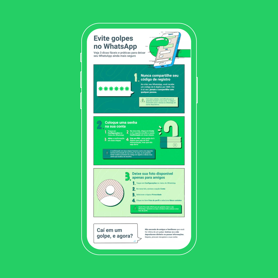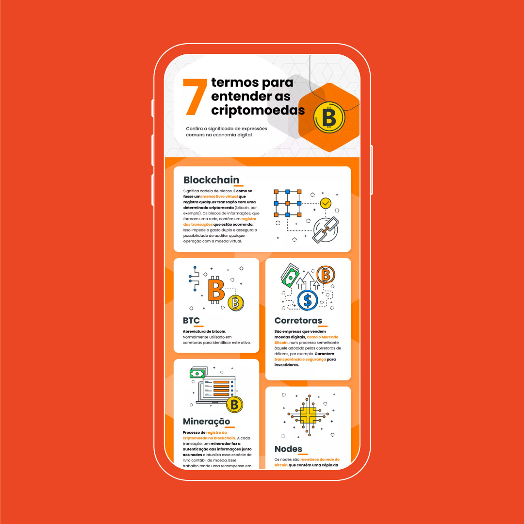 Below, I have selected 4 digital infographics for advertising campaigns at G1 from huge brands like WhatsApp, Mercado Bitcoin, CCR and Bradesco.